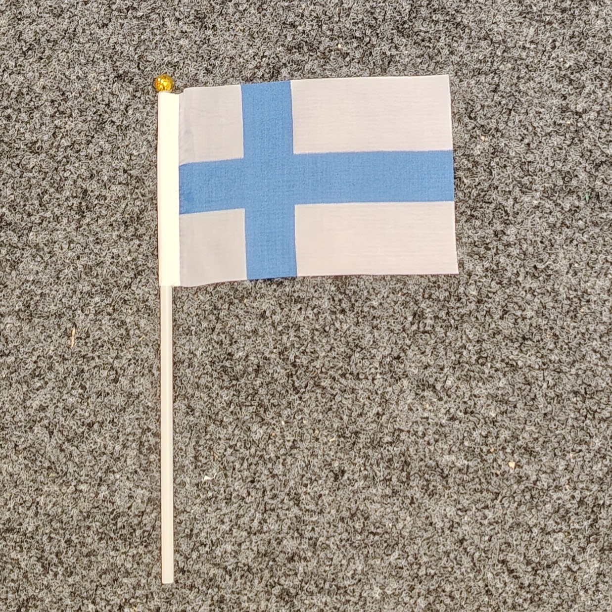 Kangas käsilippu Lipun leveys 14,5cm ja korkeus 9,5cm, tikun korkeus 24cm. Valitse tilattava lippu vaihtoehto valikosta, alta.