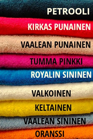 Katso värivaihtoehdot huppupyyhkeelle allaolevasta kuvasta ja valitse se myös allaolevasta vaihtoehtovalikosta, niin se näkyy suoraan myös tilauslomakkeella.
